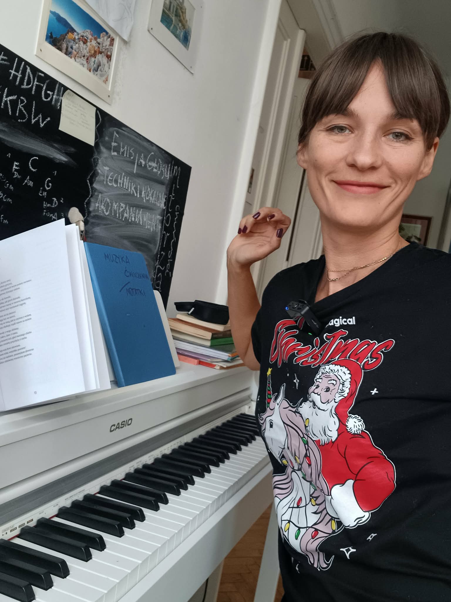 KIM JESTEM? NIE WIEM Pytanie, które stawia przed nami Buddyzm ZEN Otwiera mnie na siebie w całej wielowymiarowości jaka składa się na mnie i vice versa. Można “w nieskończoność” przyglądać się jak umysł dąży do chwytania, osiadania, osadzania się w nazwach, rolach i co nam to robi. Na pewno jest to przydatna technika, kiedy jesteśmy za bardzo uwikłani w myślach. A co kiedy jestem ze sobą w przepływie tzw. zgodzie i FLOOOOU? Staje się poezją, kanałem Muzyki - tworzę piosenki, piszę historie przyszłe, niewydarzone, niedowydarzenia, bawie się umysłem. Czasem mam wrażenie, że dzięki nauce gry na pianinie, nauczyłam swoje dłonie myśleć, stąd tak bardzo lubie pisać. Uwielbiam ruch, co wyrażam silnie poprzez taniec i neurofitness, którego zamierzam kreatywnie używać do mojej pracy z ludźmi. Od Olega ucze się lepiej używać aparatu gębowego i twórczego myślenia. Co do Muzyki i Poezji - poza ich twórczym aspektem, niosą sobą aspekt terapeutyczny. Niedoceniony. Jeszcze. Chciałabym to zmienić.